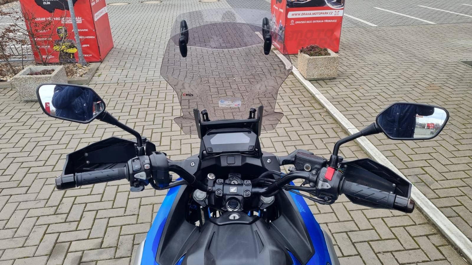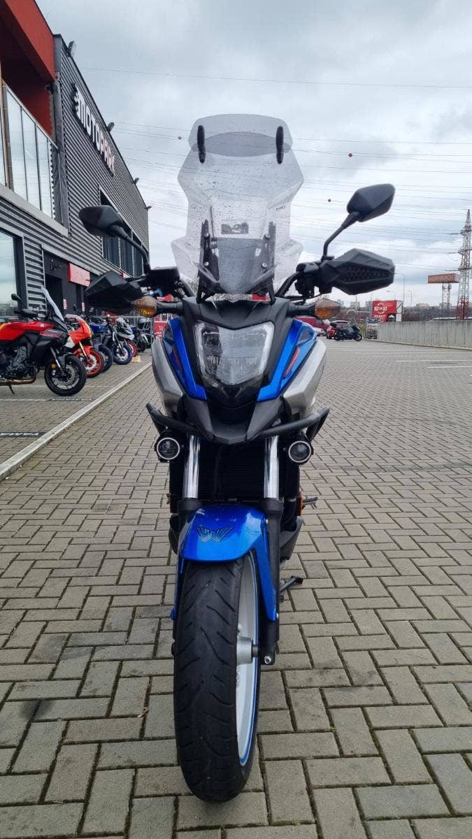 Součástí motorky je padací rám, přídavné světla, větší plexi a blastery.
