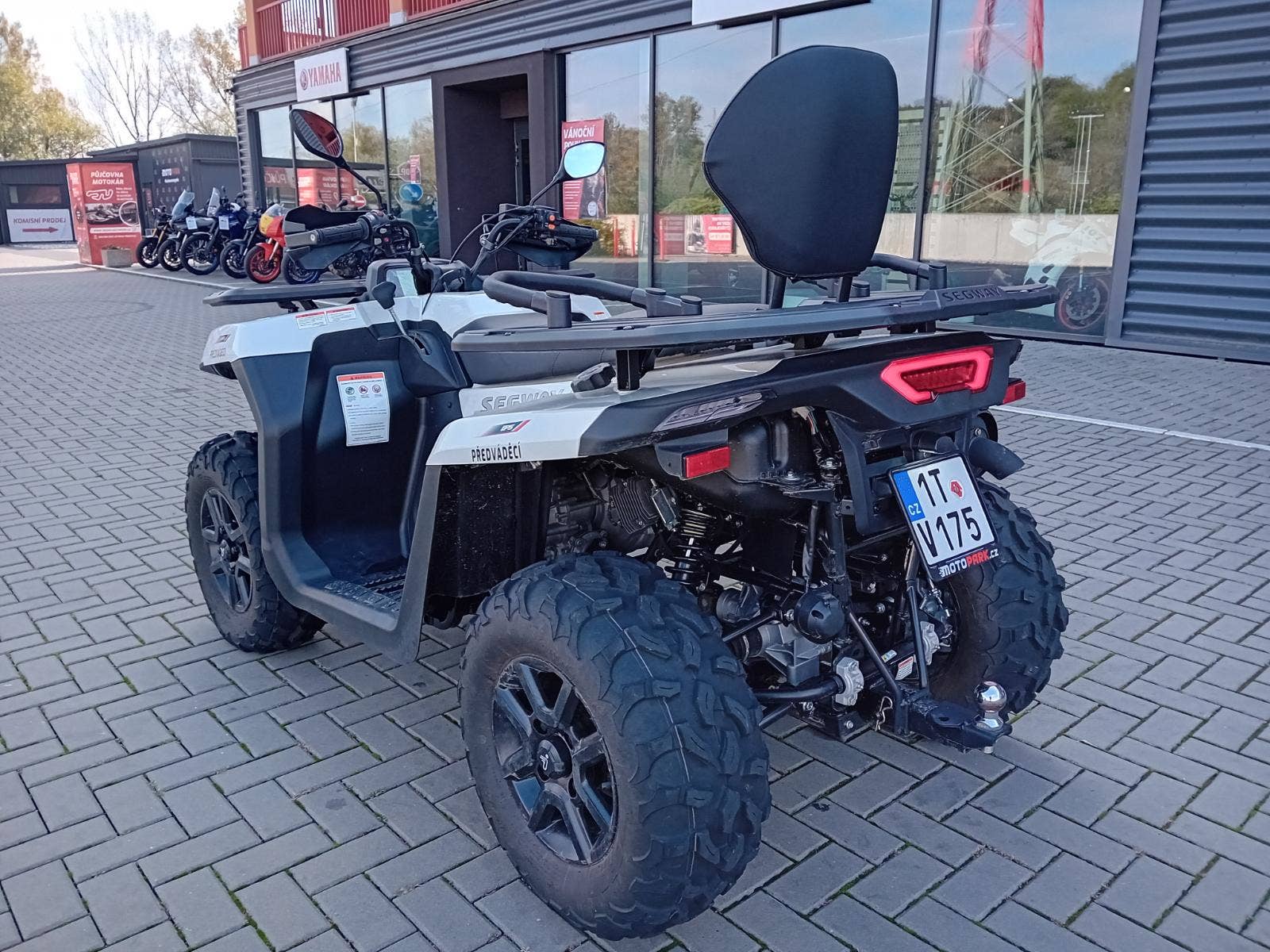 Elektrický naviják, homologované tažné zařízení, ocelové nosiče vpředu i vzadu, uzávěrka předního diferenciálu, digitální multifunkční displej, Full-LED osvětlení, přední ochranný rám, 12" ocelové disky, 24" pneumatiky, hydraulické tlumiče s progresivními pružinami + nastavitelné předpětí pružin, zpětná zrcátka, Smart Commanding System (SCS) + mobilní aplikace Smart-Moving App
